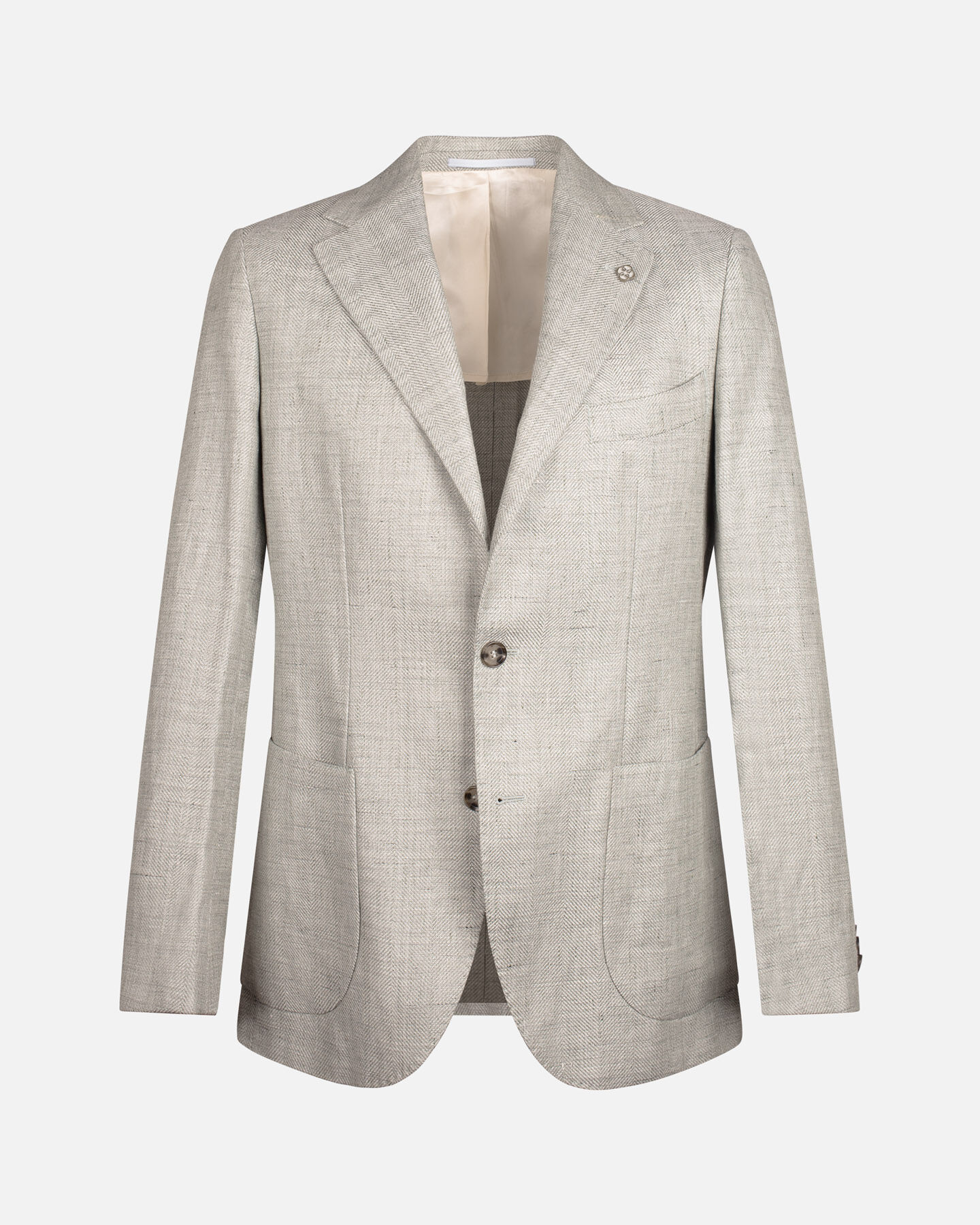This tailored jacket is designed for business and formal use where a clean silhouette is required. It is made from linen and wool fabric, offering breathability, resilience and a balanced drape. The construction supports shape through the chest and shoulders while allowing natural movement. It works for regular office wear as well as more formal occasions.