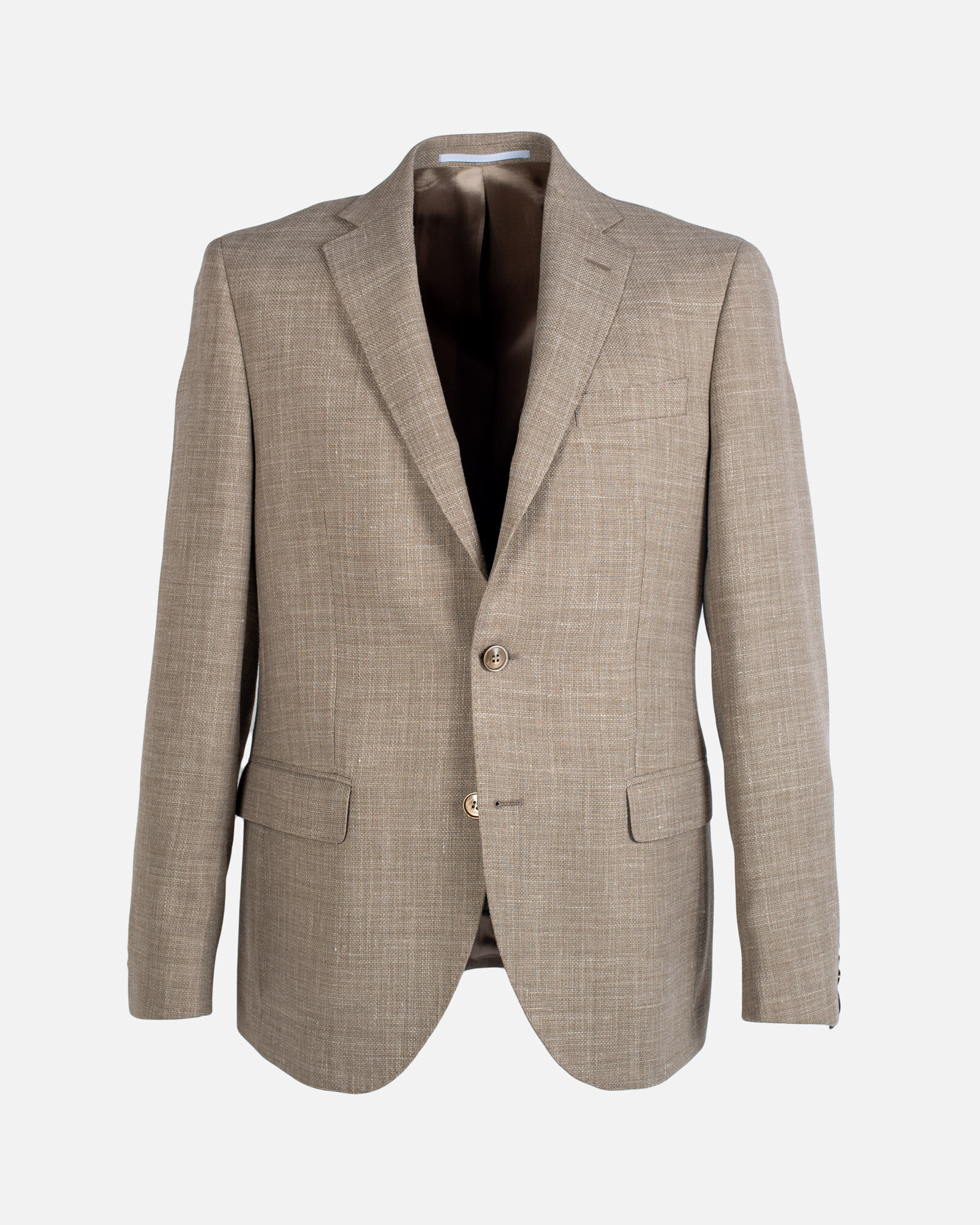 This beige formal blazer is made from a high-quality material blend of 53% polyester, 35% wool, 10% linen and 2% elastane, which provides a comfortable and durable feel. The blazer has a sophisticated and formal design that is perfect for more dressed-up occasions. such as weddings.
