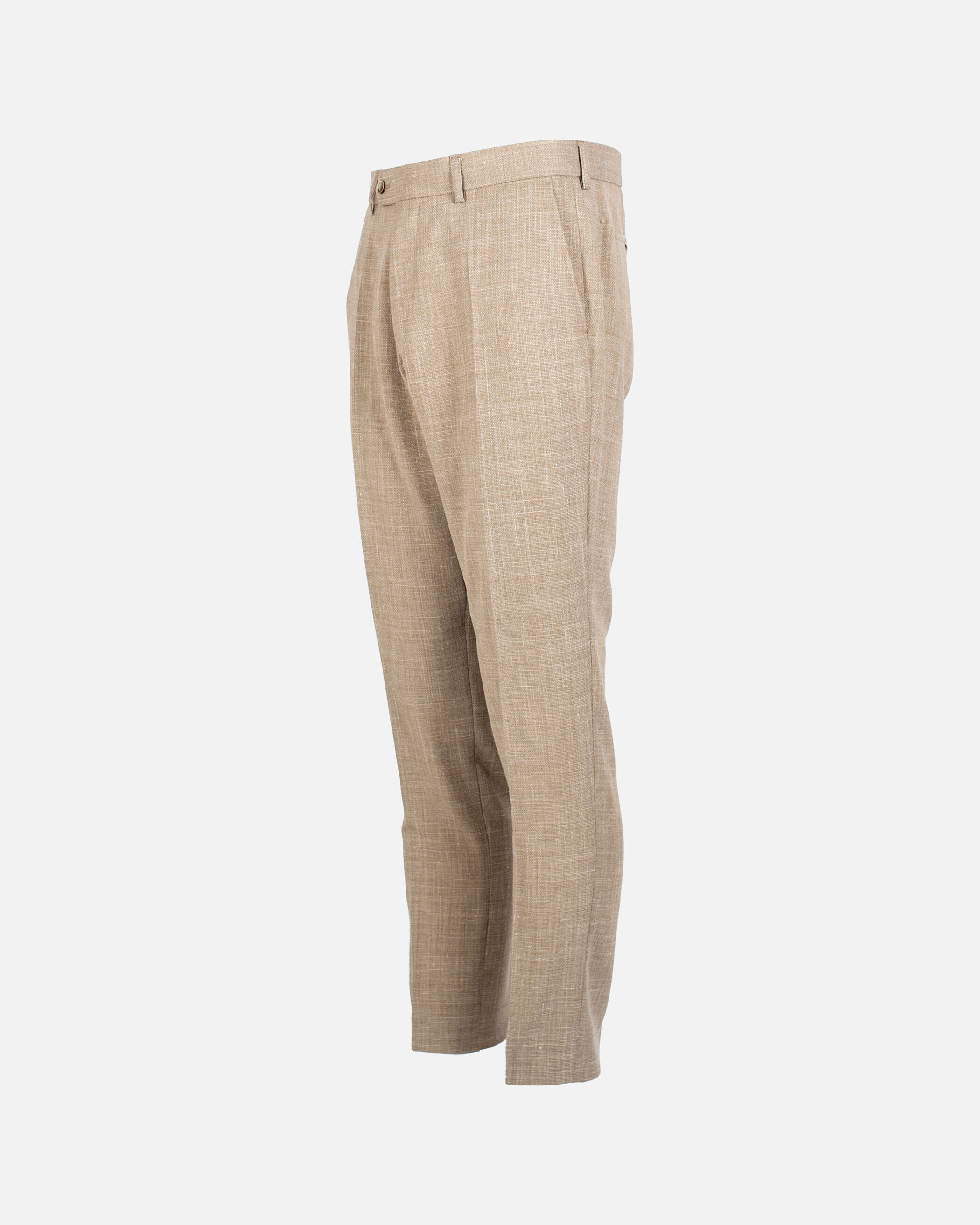 Dessa kostymbyxor är utvecklade för arbete och formella sammanhang där en ren silhuett är avgörande. Det är tillverkat i ull och linne tyg, vilket ger andningsförmåga, slitstyrka och ett balanserat fall. Konstruktionen behåller en ren linje genom benet samtidigt som den ger rörelsefrihet. De fungerar för daglig användning på arbetet såväl som vid mer formella tillfällen.